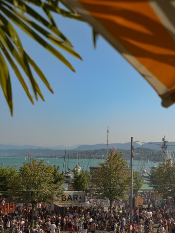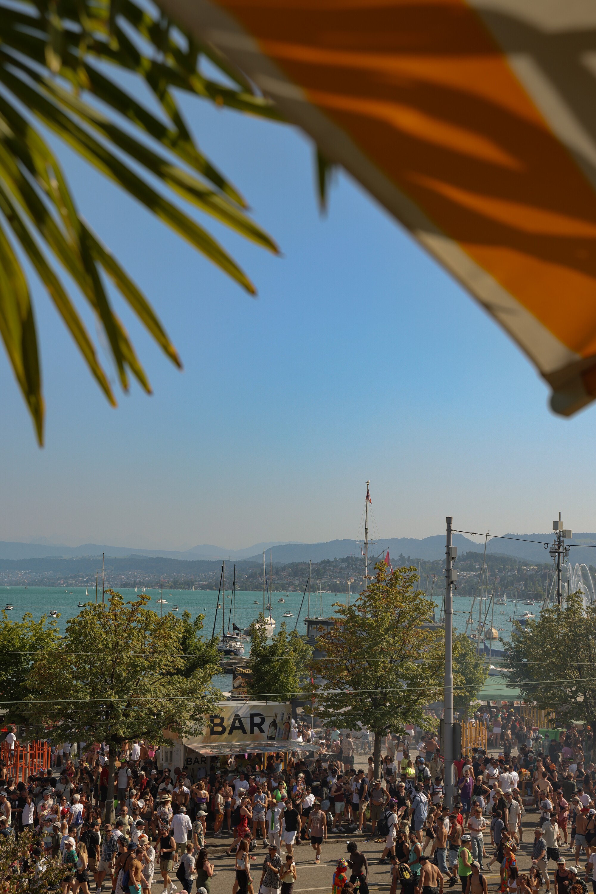 Unsere Terrasse bot mit The Palm 3 den perfekten Ort, um den Tag entspannt zu beginnen und den Blick über das bunte Treiben am Seeufer schweifen zu lassen. Direkt darunter öffnete das Sunshine Deck seine Türen als einer der offiziellen VIP-Bereiche der Street Parade. Wer hier feierte, erlebte die Parade aus nächster Nähe, mit bester Sicht auf die Umzugsroute und jedem Beat zum Greifen nah.